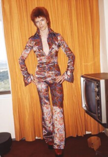 Bowie in Los Angeles was a kind of mantic probe for young kids discovering the joy of sex, sexuality, art, artiness. He was going into areas that no one had really explored before. He left spaces for his followers: not just the hierarchy of stardom and fandom but a strange, astute, uncanny folding of one into the other. From album to album there was a strange, light, almost mocking dialectic: he taught us to be critics of our own enthusiasms. He was ‘post’ and ‘meta’ and playfully ‘iconic’, before such terms had any real popular currency. July 1972: blue guitar, red boots, jumpsuit made of cushion covers from a bad mescaline trip, orange hair, a Klieg-light nimbus around his ghost-train head. A big crooked grin like he’s having the best possible time, like he has just sold the waiting world a truly irresponsible dare, his arm curling around the guitarist Mick Ronson. ‘But he thinks he’d blow our minds!’ And he did. One reason for that blown fuse was that Bowie had already worked out that the best way to put across a serious point was to stage it as an almost luridly OTT showbiz scene. You have to remember that Top of The Pops was it. There was no pop media at large, only three channels: everyone in the country was eating their tea and watching the same flicker of sound and vision. And here was this flirtatious pop-art revelation, all under the disbelieving eyes of everyone’s parents: a cosy family teatime – then wham bang! Did you see that! What on earth was going on there? Then he was gone. There was no rewinding to playback and OMG on Twitter and sharing it on YouTube the next day.