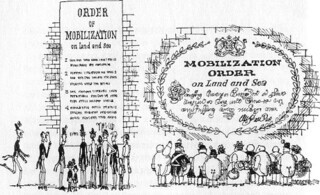 The sailors... strolled casually about, some with their hands in their pockets, and others eating bits of bread and chocolate, or perhaps a piece of sausage or the wing of a chicken. Up on thebridge was the captain. He was seated in an armchair with a table beside him laden with cakes and things to eat. Everybody – captain, sailors and passengers – looked happy and good-humoured.