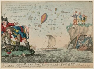 Maurois would go on to write about a real war in Why France Fell (1941), but his fictional divide according to girth wasn't so new. In Bonaparte and the British: Prints and Propaganda in the Age of Napoleon, a cartoon showat the British Museum, Bonaparte is often 'Bony' or 'Boney', while John Bull is forever a Fattypuff. Even when the British aren't depicted as John-Bull fat they're still at it, eating and drinking,drinking and eating, always maintaining their own heavy but even keel. In Gillray's John Bull taking a Luncheon an enormous Bull feasts on French battleships served to him by thecommanders who had defeated Napoleon in the Mediterranean. Bonaparte by contrast is not only typically thin, but often ill. In a cartoon by Isaac Cruikshank he stands on the Pas de Calais, vomitingat one end, farting at the other: the caption is 'Bonne Farte Raising a Southerly Wind'.