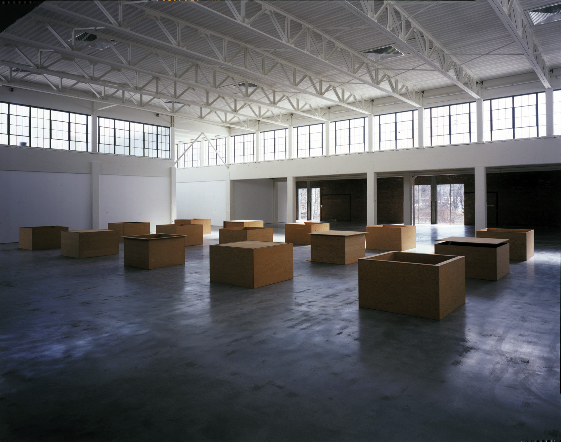In 1994 Wright made way for Michael Govan, a protégé of Thomas Krens, the director of the Guggenheim Museum. By this time, Dia had acquired nearly seven hundred works, and to show this collection needed more space than the real-estate market in Manhattan would allow. From a plane above the Hudson River an appropriate structure was spotted, an old box-printing factory owned by Nabisco near a town called Beacon. Built in 1929 out of reinforced concrete, the building is a classic daylight factory shed, with great waves of skylights, vast stretches of maple floors, and the great spans between columns necessary to the expanded scale of art after Minimalism.