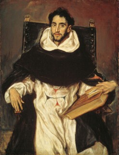 Once in Spain, El Greco was able to create a style of his own – one that disavowed most of the descriptive ambitions of painting. Obviously his portraits involved precise observation, but the settings tend to be spectral. The city of Toledo is carefully recorded, but it rests on hills which have no more substance than the clouds above. In its essentials this style was still Venetian. Colour is used in a way that was made possible by Titian in his later work: it seems to float on the surface of El Greco’s paintings, only half connected with the material world. And his combination of the graceful figural distortions of Parmigianino with brushwork and paint which are designed to be appreciated partly for their own sakes was a formula first devised by Andrea Schiavone, who was fashionable in Venice when El Greco first arrived there.