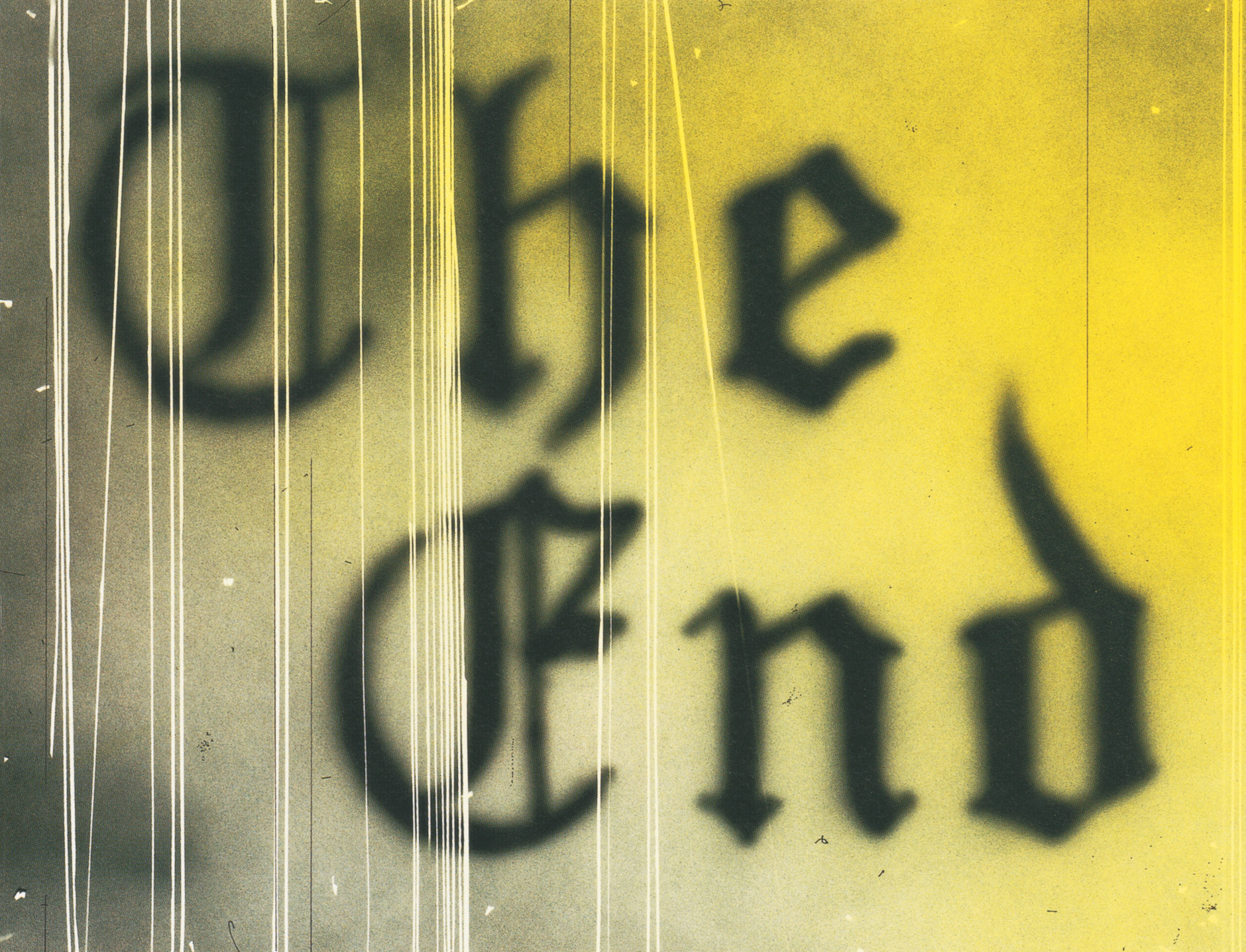 For Ruscha, ‘Los Angeles is like a series of storefront planes that are all vertical from the street,’ and this flat frontality is reflected everywhere in his art. His city is one of billboards, too, and his paintings in particular evoke these giant screens suspended in the landscape. This dual focus on storefronts and billboards implies an automotive point of view, and the windscreen is indeed the unseen frame of many of his pictures, especially those of signs captured at different scales amid broad horizons and vast skies. Just as important is the design culture of LA: more than one of his images announces that ‘Hollywood is a Verb.’ ‘They do it with automobiles,’ Ruscha adds, ‘they do it with everything that we manufacture.’ Of course, ‘they do it’ with movies above all, and he also evokes the ‘celluloid gloss’ and panoramic expanse of cinema. At once deep and flat, space in movies is all surface, and vice versa, and words (again as in credits) appear in the same register as images. Ruscha often intimates the filmic screen of projected light, which he calls a ‘deeply Californian version of infinity’.