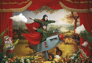 For the novice two works in this section stand out. The first is a suite of six heads in oil and pencil with detached body parts by Zhang Xiaogang (b. 1958, highest sale price $10.1 million in 2011). Zhang is famous for his imagined family groups – communism is the shared DNA – whose members gaze out wistfully from somewhere on Planet Mao (Big Family – Subway, 2004, is allocated, oddly again, to ‘The Specific Individual’). But Series of Abysses 1-6 is a more arresting sequence, with its late Orientalisation of Klee and its staging of a corps morcelé within a single, secluded space with walls and a floor: defined interiors of this kind are rare in the paintings on show. The second is the record of a tour of the provinces with a mobile photographic studio in a truck – plentiful backdrops, props and a set of theatre curtains – by Ma Liang (aka Maleonn, b. 1972), a designer by training. Ma’s work is among the most delightful in the show. His sets are lovingly painted and his subjects, mostly posing in costumes, are wholly engaging, as Supermen or samurai or a pair of pilots in a toy plane. Unlike Zeng’s masks and Yue’s enormous, leveraged smiles, permanently fixed over a worrying void, the costumes and mises-en-scène in Ma are trappings in a lavish role-play: transparent, reassuring, removable above all.