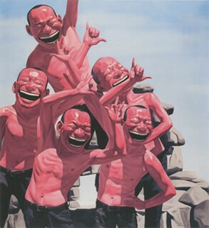 The other thread in this, the penultimate phase of the story, is Cynical Realism, which peaked about six years after Tiananmen but hasn’t yet had its day. More prized by foreign investors than the Popists, the Cynical Realists are clever and captivating, standoffish and garish by turns. Their disenchantment with politics is matched by their reservations about apolitical consumerism, an uneasiness which speaks to our own sense of gratified ambivalence and makes them some of the richest artists on earth, whose work we’d recognise as easily as Wang Guangyi’s even if we couldn’t put a name to it: Yue Minjun, Zhang Xiaogang and Zeng Fanzhi are well represented in this exhibition (see below).