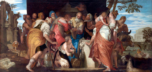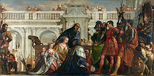 Visitors to the exhibition will get a very clear idea of Veronese’s strengths as a painter, but also of his weaknesses. He is notable above all as a colourist who used a range of bright hues with a boldness unmatched in his time and scarcely equalled since; the effects would have often been much more marked than they are today because some of his pigments – the type of blue known as smalt, for example – have become discoloured over the centuries. Hence the grey and even colourless skies in some of his pictures. With his love of colouristic effects went a taste for richly patterned clothes and elaborate jewels, and this was combined with quite a narrow range of handsome, well-fed and poised figure types. The effect is sumptuous, seductive but ultimately excessive and a little monotonous, rather like a visit to a patisserie.