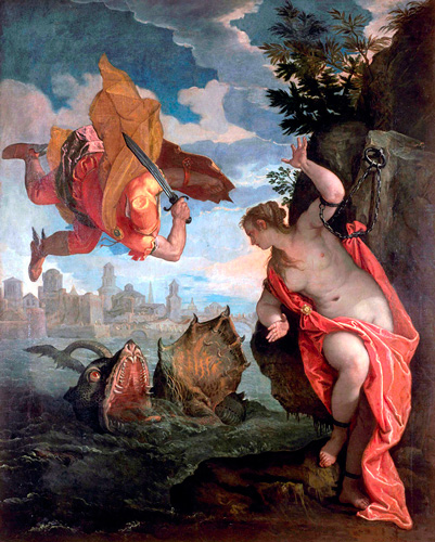 What Veronese most conspicuously lacked was an ability to create effective and dramatic pictorial narratives. This is partly a consequence of his use of colour, which was often calculated to create a harmonious overall effect rather than to single out the main protagonists. In early works such as the Magdalen Laying aside Her Jewels and the Anointing of David, the principal figures are half lost in a crowd of spectators and bystanders, many of whom seem to have little involvement in what is going on. And even in a major altarpiece such as the St George, the crowd of angels, Virtues, executioners and onlookers detracts from the drama. It is unsurprising that Veronese’s main influence on later artists was through prints, especially after his altarpieces, whereas his use of colour and costume was not much imitated.