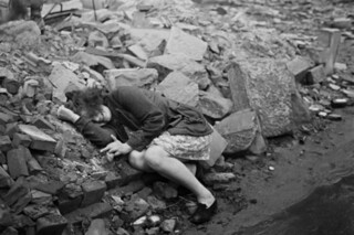 The period of the Second World War – similarly restricted at Pompidou to one small room – has a kind of subliminal charge, a faint signal that something more than picture-taking was going on. It’s not what Cartier-Bresson would have called a decisive moment; if anything, it reveals him to be a little unmoored, investigating scenes around corners, keeping himself to himself. His haunting interiors, in an empty apartment on the avenue Foch just vacated by the Gestapo, are like film stills or photographs of crime scenes. The pages of an album put together from that period poignantly convey the ruined landscape of Oradour-sur-Glane, and ordinary life on the street during the liberation of Paris. There is nothing grandiose about these pictures, which puts Cartier-Bresson in the much more affecting position of resident, rather than reporter. His portrait of a woman sobbing in the remains of a building, and his misty image of a man found dead at dawn next to a bridge, are both powerful and difficult. The sequence in which a woman at Dessau recognises the person who has denounced her and fights back, is memorably vicious. In all these, Cartier-Bresson was an escaped POW dealing with events around him in the only way he could, as an implicated spectator.
