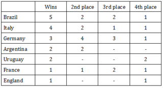 As we get to the final stages of the World Cup it’s worth looking at the track records of the major football nations. To hear the hullabulloo from the losing English camp one would think England was one of them but actually it has only made the last four twice (one win and one 4th place). This compares with the other six winners as follows: