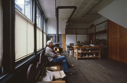 The building in SoHo – which, much to Judd’s dismay, is what New York’s Cast-Iron District came to be called – has been open to the public since 2013. There are five floors, not counting the basement and sub-basement, where the Judd Foundation has its offices, and each floor is stripped down to its specific purpose: a gallery, once Judd’s studio, at street level; an open kitchen and dining area, one storey up; and so on up to the top where Judd slept, surrounded by works by John Chamberlain, Dan Flavin, Claes Oldenburg, and Lucas Samaras. It’s the last single-use cast-iron building in SoHo, out of place in today’s neighbourhood, which has become a vast, outdoor mall for financiers and wealthy tourists. Judd bought the building for $68,000, spending money from a Guggenheim Grant, having almost bought a painting by Barnett Newman instead.