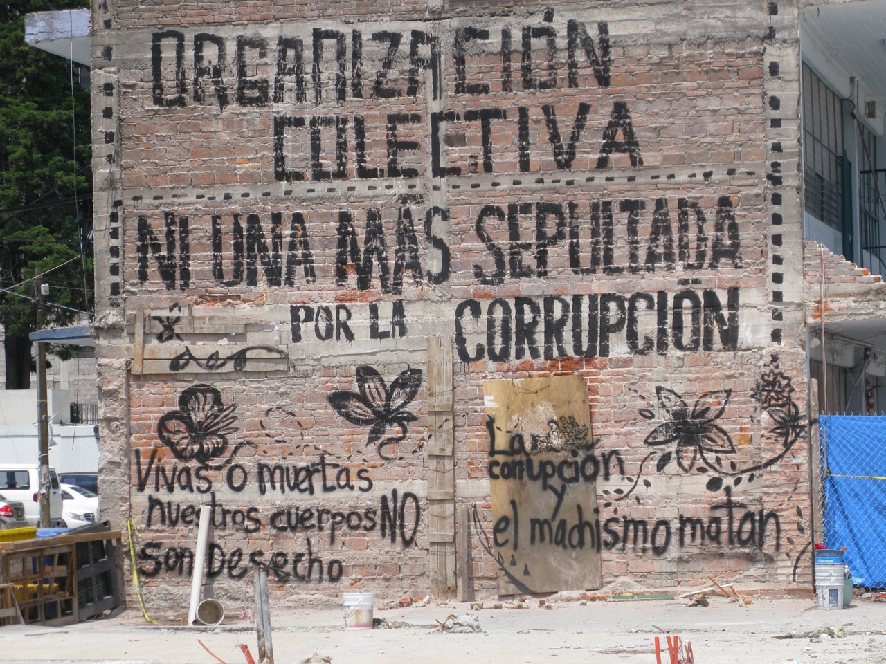 On Wednesday afternoon, I went to the site of the collapsed four-storey building at 168 Bolívar Street, on the corner of Chimalpopoca.There had been several garment workshops inside; dozens of seamstresses died. The government bulldozed the ruins three days after the earthquake and carried off the bodies. The site has become an improvised cemetery, a vast Day of the Dead offering. Hand-lettered signs unanimously blame corruption for the womens’ deaths. ‘Collective organisation,’ the largest sign says. ‘Not a single other woman buried by corruption. Alive or dead our bodies are NOT rubbish. Corruption and machismo kill.’