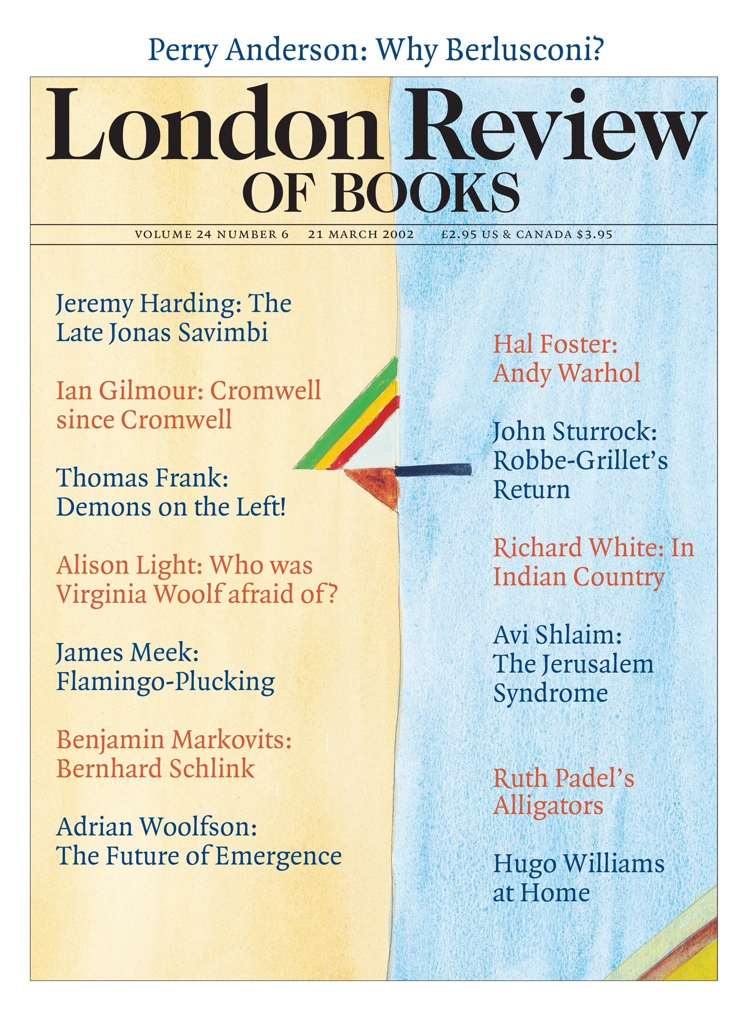 In his account of late capitalism Fredric Jameson describes its cultural logic as if it were a schizophrenic – broken in language, amnesiac about history, in thrall to glossy images, subject to mood-swings from speedy euphoria to catatonic withdrawal. No wonder that his exemplar is Andy Warhol. ‘Warhol distrusted language,’ Wayne Koestenbaum writes on the first page of his smart biography; ‘he didn’t understand how grammar unfolded episodically in linear time, rather than in one violent atemporal explosion. Like the rest of us, he advanced chronologically from birth to death; meanwhile, through pictures, he schemed to kill, tease and rearrange time.’ Signs of this linguistic disturbance, real or staged, are abundant. There is ‘virtually no correspondence in his hand’: photographs, audiotapes and films were his modes of inscription. He couldn’t spell to save his life: typographic errors recur in his commercial illustrations of the 1950s, sometimes introduced by his Czech mother, Julia. And he spoke in a deadpan that extended to his books, which were mostly edited from taped conversations. All of this evidence leads Koestenbaum to his initial diagnosis of Warhol: ‘Trauma was the motor of his life, and speech the first wound’ – speech understood here as the medium of ‘normal’ intersubjectivity or reciprocity with the world.