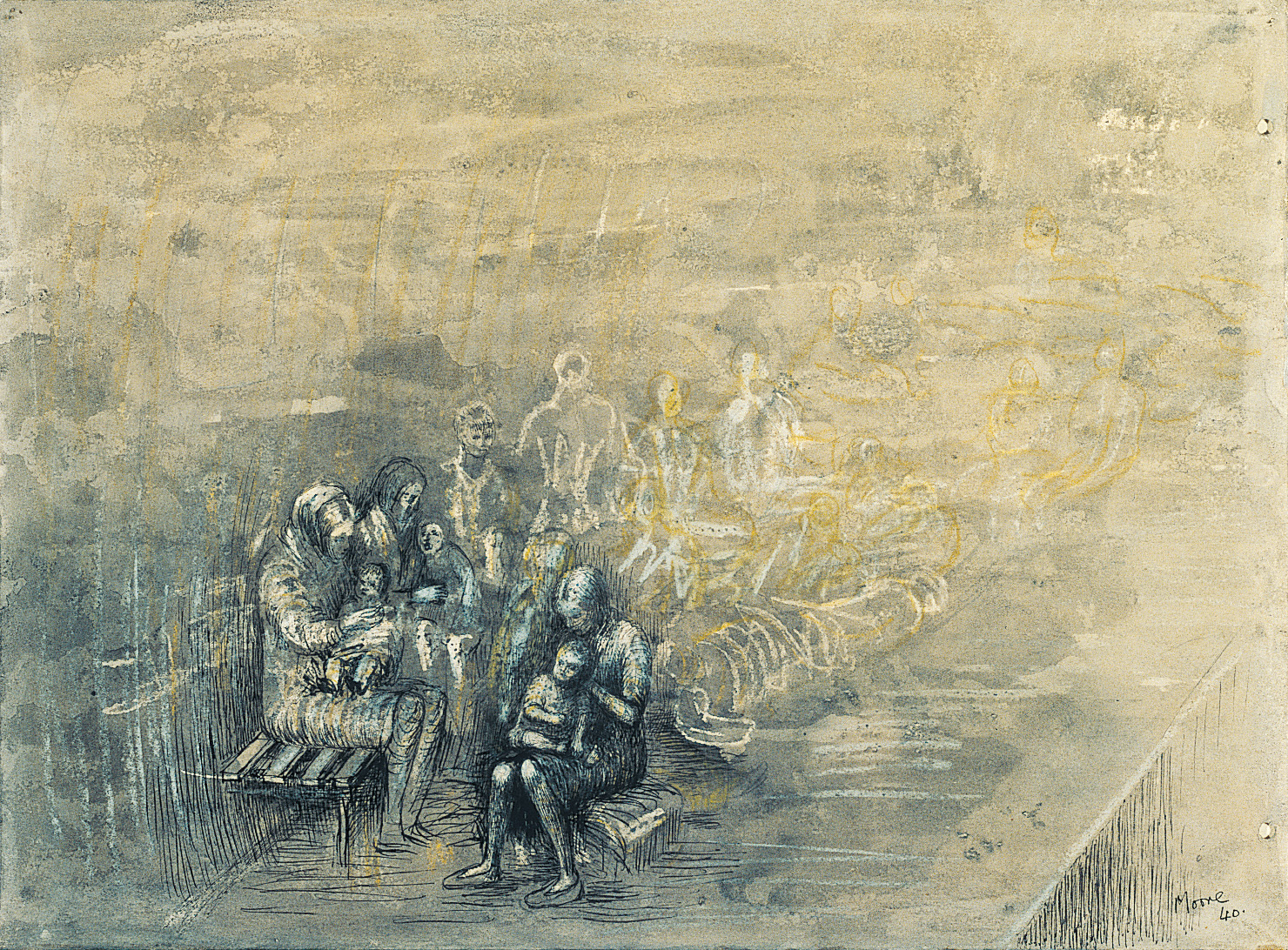 Not even Clark could find a hook on which to hang a war commission in Ben Nicholson’s constructions (he wasn’t in any case very enthusiastic about Nicholson’s work at that stage). But John Piper, who had tried his hand at pure abstraction, had by now turned to topography and was therefore recruited; and when Clark was shown Moore’s first shelter drawings, he was able to say that there was no reason now for Moore to fight shy of being a war artist.