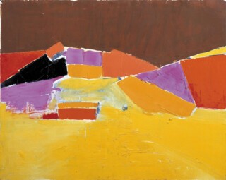 In August 1953 he bought a trailer, put into it Françoise, their children, Ciska Grillet, a painter friend of René Char, and Jeanne Matthieu, the daughter of a farmer whom he had come to know through Char, and whom he endowed with magical properties. For a month they travelled through Italy, revisiting Naples and Pompeii, but the culmination was Sicily. The great temples of Magna Graecia at Agrigento and Syracuse, the mosaics at Palermo and the constant transformation of brilliant colour overwhelmed Staël. He spoke of evenings when the sky is yellow, and the sea is red, and the sands are violet. He took in everything, filled notebooks with observations and notations, swam in the sea, but postponed painting until he had returned to France, where he finally cemented his dependence on the South with the purchase of a large house, surrounded by castellated ramparts, at Ménerbes. He moved in with his family in December.