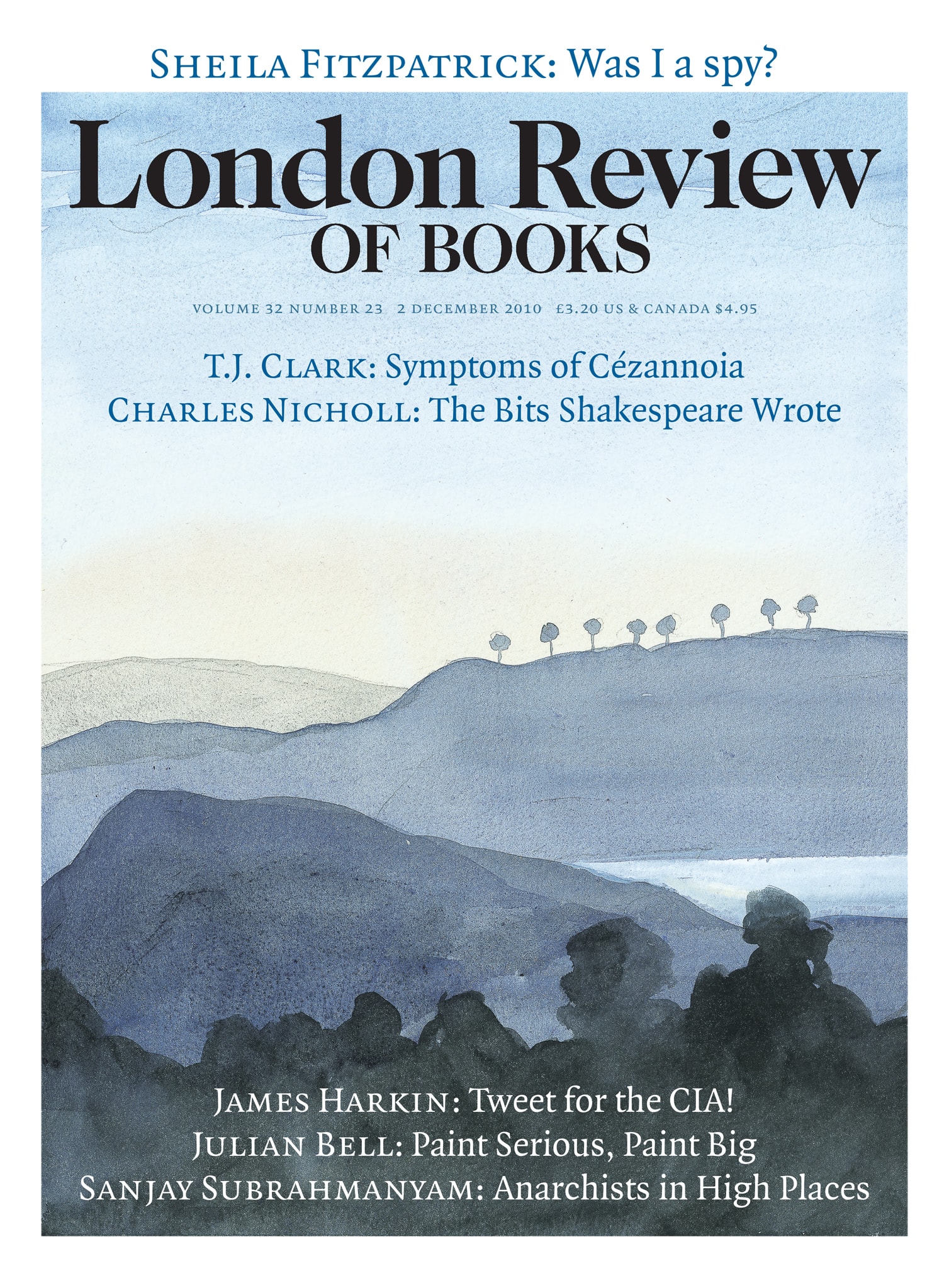 Beyond the nuts-and-bolts level, his novels have also benefited from changing fashions in Irish historiography and even from a certain absorption into Irishness. Postcolonial studies looks more kindly on him, and the wars in Afghanistan and Iraq have refreshed his ‘unintended topicality’. Above all, perhaps, his uneasy, ironic identification with Empire-builders might now strike a British reader, at least, as being almost salutary. ‘The British,’ an essayist writes in J.M. Coetzee’s Diary of a Bad Year, ‘have simply declared their independence from their imperial forebears. The Empire was long ago abolished, they say, so what is there for us to feel responsible for? And anyway, the people who ran the Empire were Victorians, dour, stiff folk in dark clothes, nothing like us.’ Farrell’s trick is to come on like one of these slippery Brits while making the opposite case. As the Collector, Mr Hopkins, thinks in The Siege of Krishnapur: ‘We look on past ages with condescension, as a mere preparation for us … but what if we’re only an afterglow of them?’