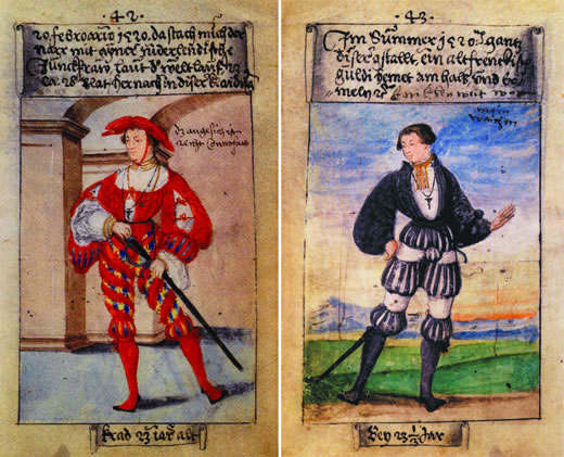 Styles travelled on the same paths as other forms of knowledge: like the new tourists setting off to see the world beyond their native city walls, soldiers, merchants and craftworkers were taking the place of pilgrims and crusaders. Ambassadors travelled with artists and chroniclers to report on the society and culture of foreign lands. Fashion and printing are intertwined, and the costume books Rublack reproduces were often copied and disseminated in different media. As Jones discusses more fully, motifs were reproduced on paper, tiles, embroideries, biscuit tins, dinner plates. A style could carry a cluster of meanings, signalling wealth, availability, citizenship, experience, occupation, age; but when a style went out of style, as it inevitably did, these meanings changed – the subject then looked ridiculous. A cruel fate, terribly caught in the cozening of Malvolio in Twelfth Night.