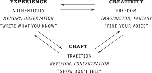 The book sets out a system in which two triads are co-ordinated (it will be their interrelationship which poses the most interesting problems for theory). The first of these tripartite systems is that of the teachings and doctrine of the creative writing programmes introduced after the war. It can naturally enough be assumed that these literary and formal injunctions reflect significant changes in American subjectivity as well as modifications in the class relationships which it reflects. They are quickly summarised: write what you know, show don’t tell, find your voice.