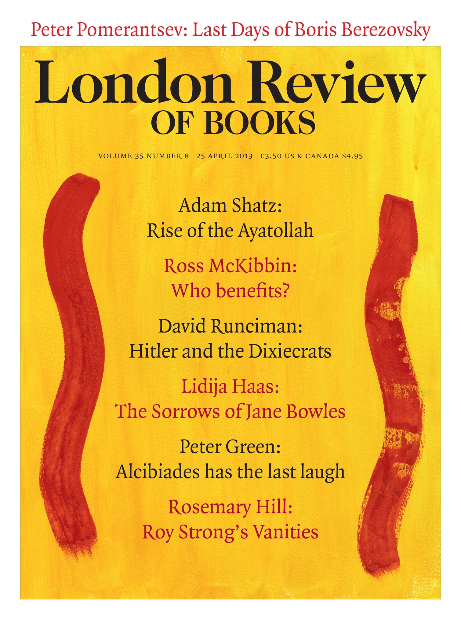 ‘He’s my enemy,’ Jane Auer recalled telling a friend when she first met Paul Bowles. But she immediately followed him to Mexico even so and, though she had been and would always be much more drawn to women, married him less than a year later. The instinct to court an ‘enemy’ rather than an admirer may have been a shrewd one: it seems to have been especially difficult for Bowles’s admirers to do her justice. Once greeted with hostility and bemusement, her writing has now been rescued several times over: Everything Is Nice gathers most of her published work apart from Two Serious Ladies, her only novel, bringing together material – including the few unfinished pieces Paul Bowles took from her many notebooks after her death, and a handful of letters – from several earlier collections. Yet the temptation to romanticise or over-identify with Bowles herself remains. Her biographer, Millicent Dillon, who did much to draw people’s attention to her in the 1980s, names the many Bowles acquaintances she encountered in her research who remarked on ‘how much I looked like Jane’. Bowles’s emotional and physical troubles – anxiety and indecision grew into an insurmountable writer’s block; a stroke at forty attacked her powers of language and imagination – invited people to read her work through her problems, and her reputation was eclipsed early on and steadily by the juggernaut that was her husband’s.