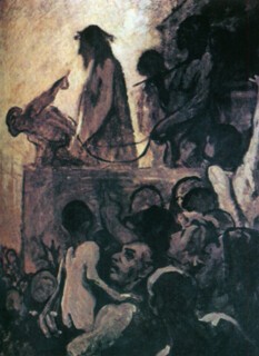 That this exhibition is full of irresistible jokes as well as stabs of pathos almost goes without saying, particularly when it is near impossible to draw a line between Daumier’s own wit and that of Philipon, who composed many of the captions. Laughter shrinks historical distance. The body-centred politics of this art, with its instinct that every rhetorical burden should be weighed on the shoulders of working men and women, continues to communicate. Or is it the communication breakdowns that inspire, the flailing battles with paint that seem a foretaste of later modernist heroics? Think further about Daumier’s politics or his aesthetics and the historical strangeness returns: the unique circumstances in which this quiet, dreamy, noble-minded hack played off the brash new medium of lithography against high art agendas. Think further about the mental operations involved in doing so, and you fall back to reflecting on the strangeness of genius.