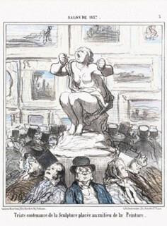 A Daumier lithograph of 1857 shows a marble statue on a plinth coming alive in the midst of the busy Salon. She clenches her fists and bawls in sheer frustration. No one hears her. No one sees her – and that is the reason for the ‘triste contenance de la Sculpture’, as the caption has it. In an out-turned circle, the top-hatted Parisian art-lovers turn their backs on the plinth, gawping instead at the paintings packed dado to ceiling on the Salon’s walls. Eleven years earlier, in his ‘Salon de 1846’, Baudelaire had sardonically wondered ‘why sculpture is boring’. Three-dimensional manufacture – ‘brutale et positive comme la nature’ – satisfies only hicks and savages, the critic suggested. More advanced minds will not be content with objects that can be approached from all angles and thus fail to supply us with a personal artistic viewpoint. Painting, with its single perspective, ‘exclusive et despotique’, is more properly the language of the imagination.