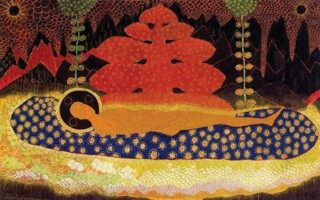 But if by the turn of the 1930s Malevich had found a way to deploy Suprematism’s forceful handling of colour and space on a human scale, the tone of his last works is altogether less stable. There’s an eerie combination of cheer and gloom in the 1933-35 portraits of his wife, the art critic Nikolai Punin and a female worker: each stands, dressed in red and white and blue, against a black backdrop, making enigmatic gestures with their hands. For his 1933 Self-Portrait, Malevich looks to have borrowed an outfit from the Quattrocento; he stands with one hand across his chest, again communicating something – but what? These final canvases suggest some private allegory or code at work, a kind of representation that suggests a mysterious absence. The Russian term for abstraction was ‘objectlessness’; what if the objects in figurative art bear no more relation to the physical world than geometric forms do, inhabiting some separate realm of their own? And what if the task of painting were not to depict, but to wall off one piece of that realm after another? After decades of bold pronouncements, Malevich’s work ended on a cryptic note, as if he had found a way to dress up abstraction as representation.