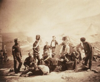 The camera’s capacity for transformation makes us more nervous than it did the Victorians. Fenton wasn’t a war reporter, bearing false witness; he was under orders from the printsellers Agnew and Sons, who, besides betting on a market for his photographs, had also commissioned a history painting from Thomas Barker, for whom Fenton’s work was to provide the equivalent of preparatory drawings. The purpose of his trip – Fenton arrived in March 1855 and left in June, three months before the fall of Sebastopol – wasn’t to document the unfolding war as much as it was to memorialise it. He understood that the public wanted verisimilitude of a particular kind: a truthful depiction of the men, scenes and types already familiar to them from the press reports. The Illustrated London News’s reviewer was fully aware of the staginess of Fenton’s anonymous self-portrait in uniform (‘not unmindful of creature comforts’ was his comment on the bottle of beer), but he recognised its representative value: he is ‘bent on his duty, and is cocking his formidable weapon, with a keen glance at some outlying Russian’.