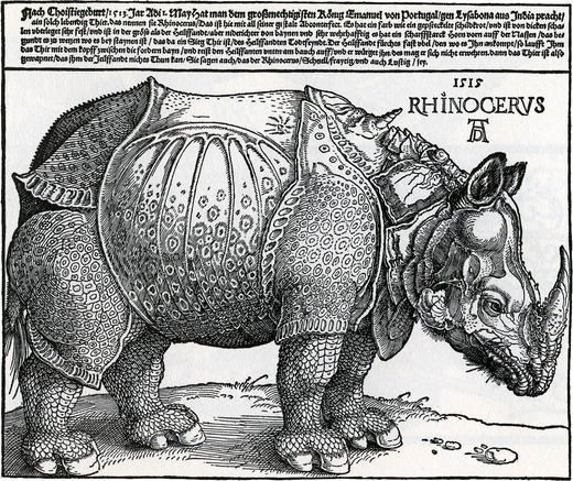What does a rhinoceros look like? If you are fortunate enough to have seen one in the flesh, you can can summon up an image from memory. If you haven’t seen one, you will have to conjure a mental image from pictures seen in books or in nature documentaries. There’s at least a chance that in forming this image your imagination will have tapped into a picture that is more than five hundred years old – Albrecht Dürer’s woodcut of the outlandish pachyderm, made in 1515. Dürer himself never saw a rhino. He too had to imagine the beast, so your imaginings might have something to do with his imaginings, which ‘bodied forth the forms of things unknown’, giving them a shape, a name and a durable engraved image.