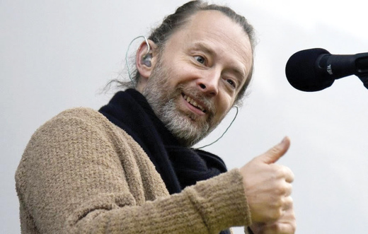 Thom Yorke is holding the microphone out to a crowd singing the chorus of ‘Creep’ in blunt unison, never missing a word. He shrugs. The tilt of his wrist says, look at these idiots, and maybe, I am an idiot myself. Then he smiles, one cheek lifting into an apple in the grey fog, and it is a real smile trying to pretend it isn’t. He begins to sing the final flight of notes, at first almost parodically, but then halfway through his voice bursts some constraint of bitterness and flowers into the real song, as big and as terrible as a tiger lily, and he has made it new, and it is his again. It defeats even the men calling out his name, on the verge of heckling, trying to steal him from himself, Thom, Thom, Thom. His skin is gone, he is utterly protected, he is the size of the arena and alone as he was when he first discovered he had that sound inside him. He stands, squeezing the microphone as if it were the throat of what had hurt him, the rigid systems inside him blown, nothing more than a boy, wearing the only kind of shirt available at that time.
