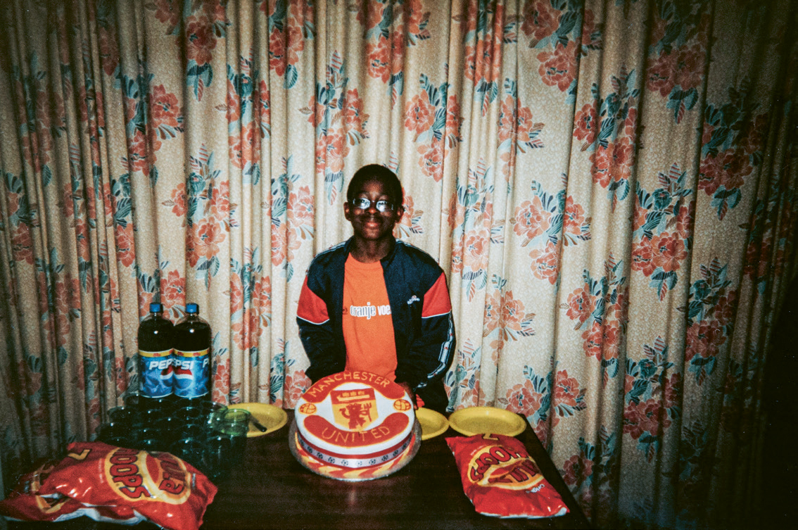 The form of the book is elastic: everything from ballads to essay fragments and journal entries. Femi’s range of reference is similarly eclectic: he incorporates lyrics from Dizzee Rascal, K-Trap and Frank Ocean, as well as quotations from John Boughton’s Municipal Dreams: The Rise and Fall of Council Housing (2018), an essay published by the American Academy of Ophthalmology and a Netflix show about the interior designer Ilse Crawford. His own photographs are interspersed throughout the book. A young guy in dreads drinks from a china teacup on a stairwell; Femi stands proudly in front of a Manchester United cake at his eighth birthday party; a group of friends in a box room crack up at some long-forgotten joke. He has said that these images are meant as a riposte to the ‘mugshots’ of Black people that circulate in the media.