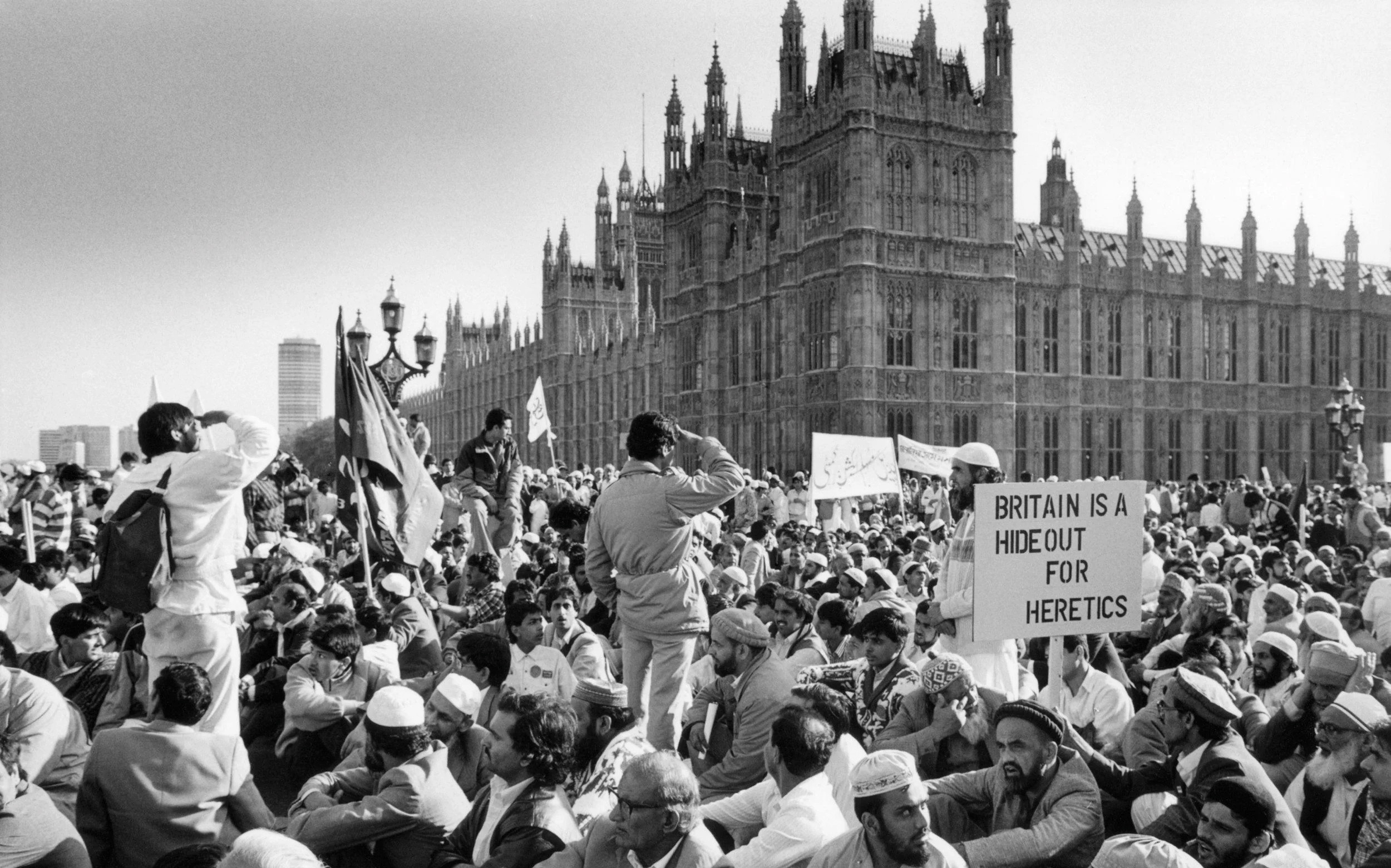 A week before The Satanic Verses was published in September 1988, Khushwant Singh, editorial adviser to Penguin India, told an interviewer that it contained ‘derogatory’ references to Islam and might incite ‘communal violence’. At the time, no one paid much attention. ‘I expected a few mullahs would be offended, call me names and then I could defend myself in public,’ Rushdie later told the Independent. But the Penguin offices were soon inundated with angry letters and phone calls. The first major protests in the West were in Bolton and Bradford, where thousands of Muslims took to the streets and staged public burnings of the novel. These were followed by further protests in the UK and then in Pakistan.