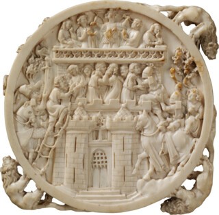 The object at the centre of Medieval Multiplied: A Gothic Ivory and Its Reproductions, at the Courtauld Gallery until 16 February, is a 14th-century ivory mirror case, carved in relief, showing knights laying siege to a castle defended by maidens. On the left of the scene, a knight in chainmail climbs a rope ladder fastened to a battlement. He has lost his helmet but is on the cusp of breaching the castle. A wimpled maiden reaches down to stroke his chin. Next to him, another knight has half removed his own helmet and holds his sword upright by its point – a symbol of ineptitude, perhaps. On the right, a knight is boosted over the wall by a confederate. Caparisoned horses crowd the foreground. At the top of the scene, above a parapet embellished with trefoils, a demented seraph – the God of Love – gleefully stabs two members of his retinue with arrows. The margins are patrolled by lions who guard the threshold between our world and that of the siege.
