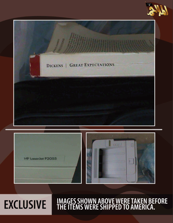 Ever since the reports of October’s foiled ink-cartridge bombings mentioned that a book was in one of the boxes along with the printer, I’ve wondered what it was, and if it had some symbolic meaning. It was impossible to make out in news photographs, but the mystery is solved in the November issue of al-Qaida in the Arabian Peninsula’s English-language magazine (via Christopher Hitchens in Slate), which published pictures of one of the bombs being made and a close-up of the book: