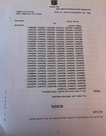 Yet, as the bells struck midnight on Christmas Eve, the state submitted an appeal to a higher court, asking it to verify the imprisonment order. Asaf Weitzen, a lawyer who works for the Hotline forRefugees and Migrants and represents 123 of the asylum seekers, said he was disturbed by the fact that in the appeal the asylum seekers have no names, only numbers.