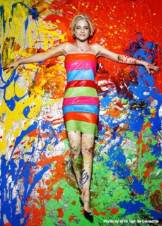 For more expressive royal paintings, we Belgians need look no further than the works of Delphine Boël. As her homepage tells us, Boël is ‘known for creating multimedia artworks overflowing with colour, texture and humour’. She isn’t kidding. The site shows Boël, arms splayed, in a multi-coloured striped dress on an equally vibrant acrylic-spattered canvas. Its online portfolio showcases her vibrant canvases, neons and sculptures. One of the sculptures is of a giant toddler dressed in Elmer-the-Elephant check, passing green urine, Manneken-Pis style, into a beer glass. Boël’s work relies heavily on text: in one piece, a Belgian tricolour bears the legend ‘don’t ask how sausages are made’; a neon installation flashes ‘Love Child’. The motif ‘blabla’ recurs frequently, often in pictures, but also as a chunky gilded stand for a coffee-table. One of her acrylics, in cerulean, bears the acrostic ‘Fornicate Under Consent of the King’; more bluntly, a diptych announces: ‘Fuck you I exist.’