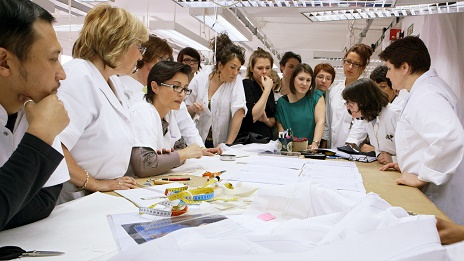 We first see Simons on the day he meets the atelier staff. He trained in furniture and industrial design before specialising in menswear and ready-to-wear. Having never worked with haute couture,he has only two months to design and produce his first collection. His right-hand man, Pieter Mulier, explains that 'Raf doesn't sketch', so we see lots of mood boards pinned up in the studio andhunched design staff drawing their master's visions. (‘Ateliers are the decoders of hieroglyphs,’ Dior wrote.)