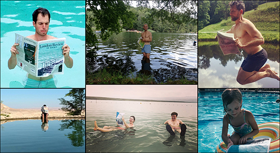 Perhaps we have only ourselves to blame. By awarding last year’s top prize to an underwater entry, and then publishing a watery cover one week into the contest, we were asking for it. There have been an unprecedented number of entries to this year’s #readeverywhere competition that feature pools, streams, rivers, lakes and seas. These readers seem to be forgetting something important: the London Review of Books isn’t waterproof.
