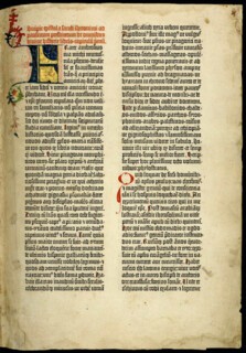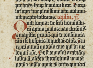 In the second column of the Bible’s prologue, the epistle of St Jerome to Paulinus, is a two-line initial Q. Images of the page are easy enough to find online and they show that there was little consensus about how to cram the letter into a space it didn’t fit.