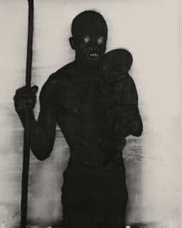Shumba’s work, like that of the American artists Kara Walker and Kerry James Marshall, evokes caricatures of Black men and women, the founding myths of racism, and the reframing and use of classical art history to tell us something about power relations in the present. Shumba also reaches into Zimbabwean history. The recursive gesture to mythology calls to mind the soapstone birds that sat on columns at Great Zimbabwe and the mhondoro (ancestral spirits) that transmit music to players of the mbira dzavadzimu. Mbira music is itself recursive. Artists play a certain repertoire, looping the past through the present, as melodies peel from the iron keys of the instrument. Shumba works within and around that tradition the way he works in and around the tradition of southern African artists.