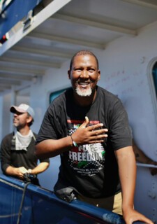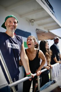 When we get to Gaza there’s a plan in place, a protocol. I don’t have the details, only the steering committee has those details. What we know is that there’s an agreement with local NGO’s and a protocol for them to receive the aid we have in these boats. It’s three hundred tonnes of aid but still it’s nothing of what the Gazans need. So what is going to happen is we’re going to start with that corridor, and the same flotilla will go back to another port – to Cyprus or somewhere that’s close – and I will keep going back and forward to bring aid. The real intention is for governments and big NGOs who actually have the capacity to use that corridor to stop people who are getting starved to death systematically and on purpose.