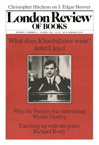 Richard Rorty’s review of Charles Taylor’s The Ethics of Authenticity (LRB, 8 April) is a heartening example of the virtues of his own ethic – of dialogue, of being open to persuasion by the argumentation of others with whom one only partially agrees. But it still leaves some anomalies in the ‘anti-metaphysical’ position which should worry those who have no wish to rejoin the metaphysicians....