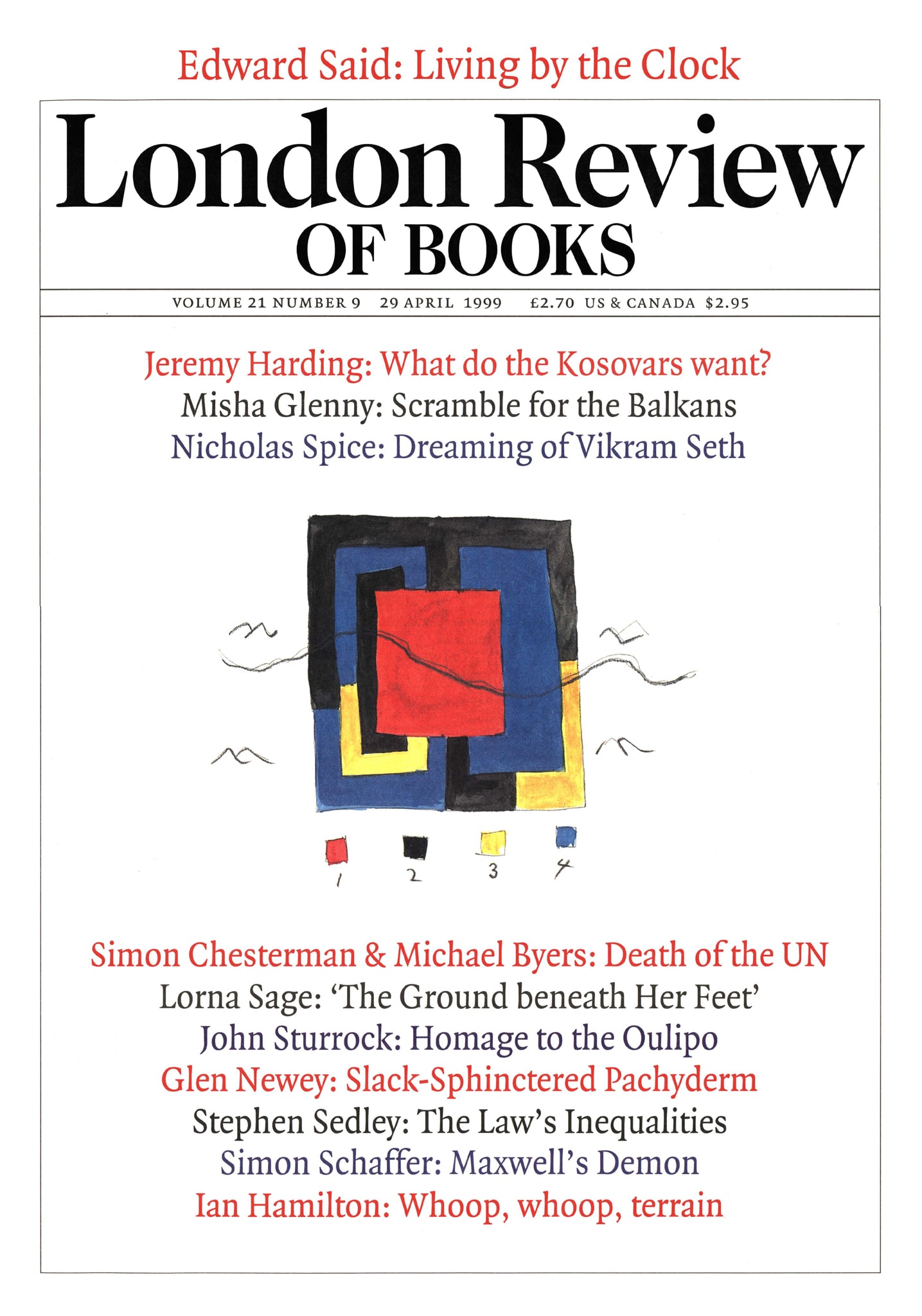 In his latest work, as in Solidarity in the Conversation of Mankind: The Ungroundable Liberalism of Richard Rorty (1995), Norman Geras is much concerned with the Holocaust. In the earlier book, his target was Rorty’s East Coast moral particularism: his insistence that charity begins (and, as that always means, ends) at home – the ripples of sympathy growing weaker and weaker as they move outwards from self to tax-adviser to hamster to wife to fellow Americans and remaining mammals – was, according to Geras, refuted by the motives driving gentiles to rescue Jews from liquidation. Rescuer testimony suggested, contrary to Rorty, that shared humanity was the prime motivation for rescuers, at any rate in Denmark. It is undeniable, as Geras says, that the Holocaust hasn’t bulked large in recent political philosophy, though it plays big – indeed, sounds an endless crescendo – in the wider ‘culture’. This is, in part, frank thanatolatry. Compare the end-of-century vogue for hecatomb historiography, as in the late spate of works on the First World War, let alone the tumbling mill of tomes on the big H itself. This is guilt commodification, the indulgence-sale launched when the Invisible Hand turns to pleasuring the spiritual organ. Hope of radical reform being decidedly at a discount nowadays, the sole shift remaining is to put ressentiment to work niggling away at our bygones. The old gibe about the SDP was that it offered a better yesterday. Today’s aimless moralism offers a worse yesterday, and this faute de mieux, a better tomorrow being out of bounds. What sets out as critique may become commodity fetishism, symptom rather than diagnosis.