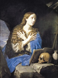 These were saints who, MacGregor explains, a young woman of good family could take as models. The theologian Pierre de Bérulle, consoling Henrietta Maria, then on her way to wed Charles I in the desert of Protestant England, offered Mary Magdalene as an example, maintaining that she came from a good family (as did St John before he abandoned society) and was of irreproachable character – not a prostitute at all. Both had given up the comforts that go with rank and wealth to serve Jesus in poverty – which is also what the daughter of the painter was doing in her convent. The pictures show not so much imagined historical figures as imagined respectable contemporaries who have assumed the attributes of saints. The devotional picture, then, is not an icon which helps you think about the saint, so much as an image which helps you imagine yourself being saintly.