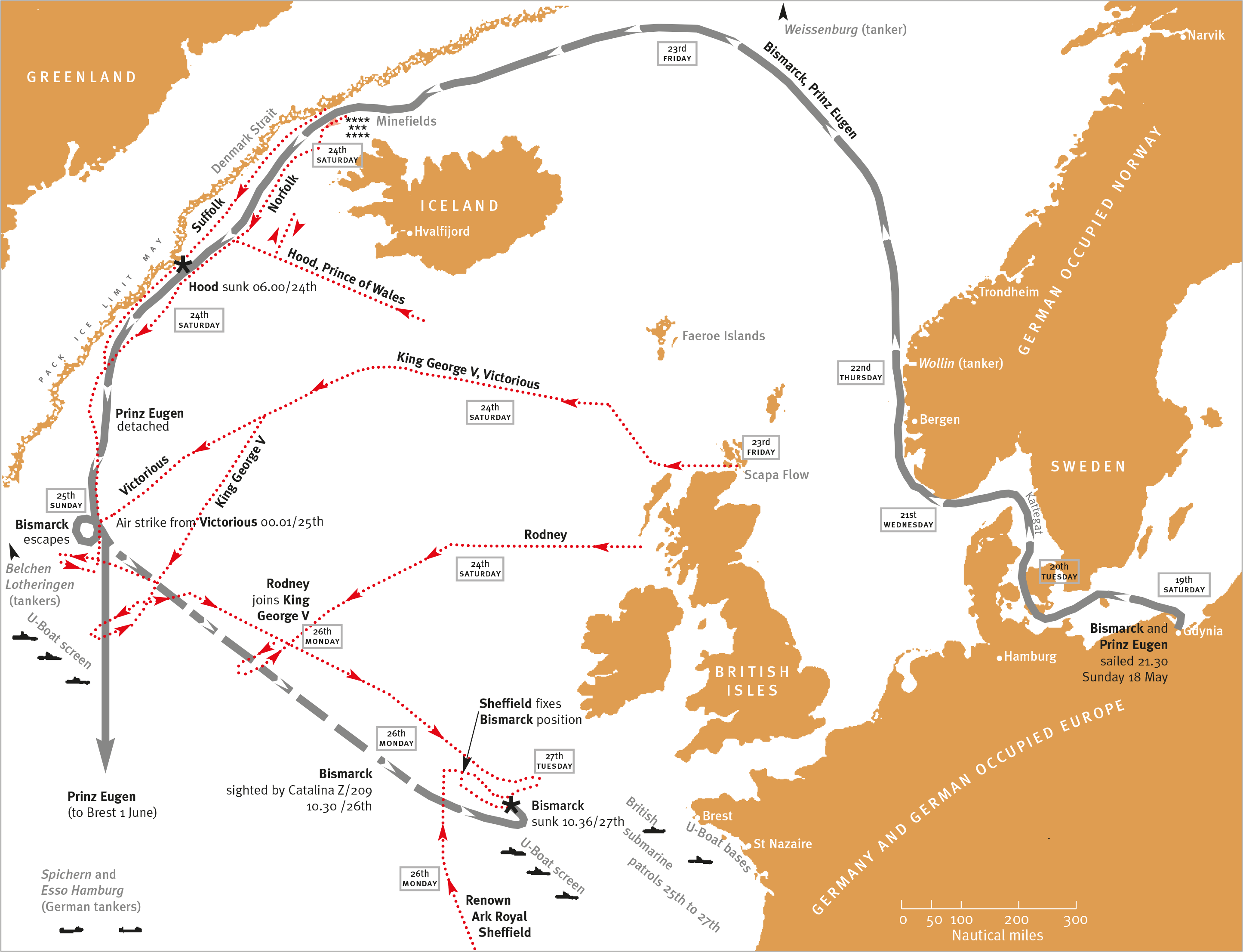 The funny thing is that if, 60 years ago, a single one of the British or German mistakes had not been made during these ten days, the enemy might have got away and thus changed the history of the war at sea.