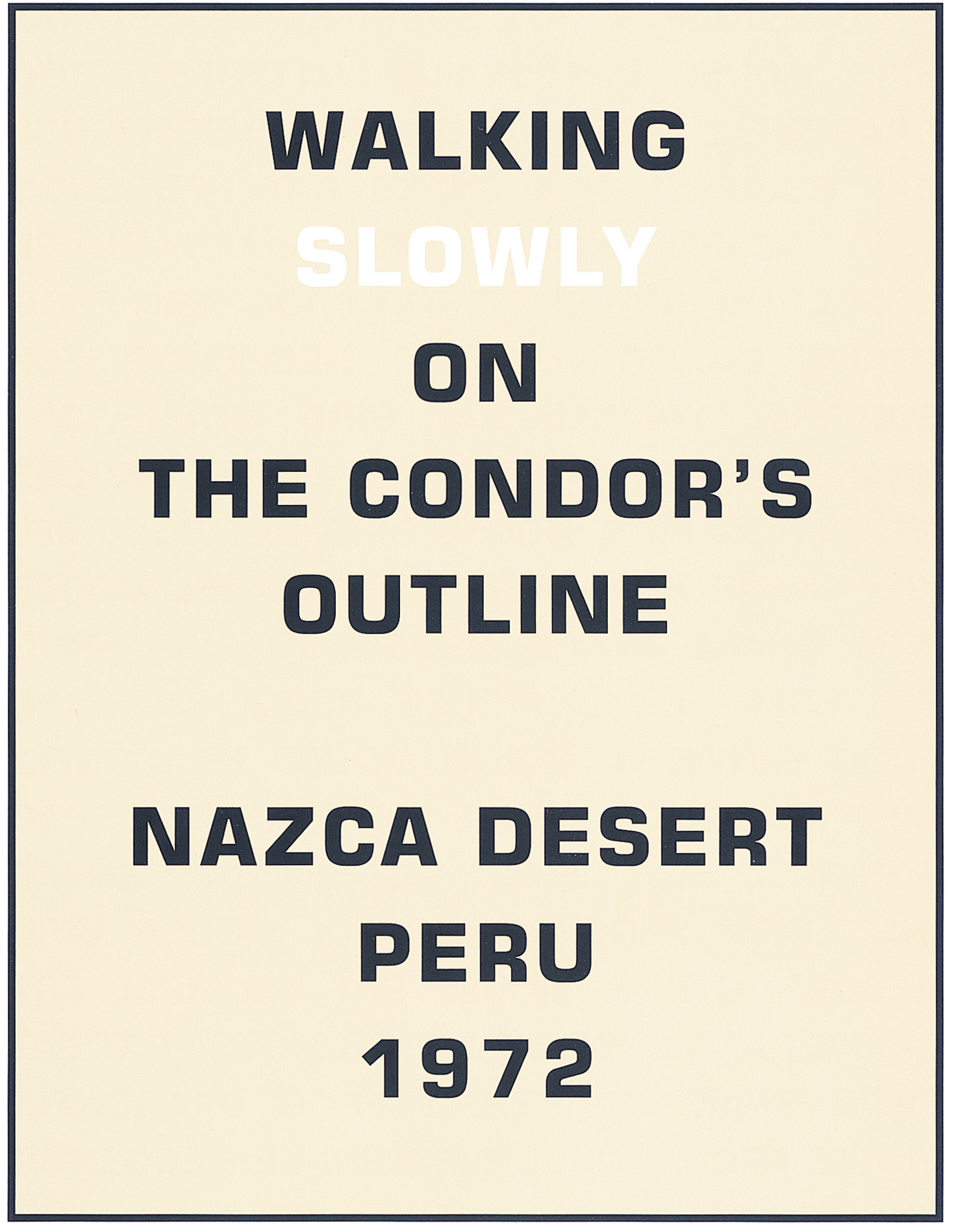 Fulton has made many walks of many kinds in many places over the last thirty years. But because a walk must exist in the present, and take place elsewhere, all he has to offer in the gallery are wall inscriptions, captions, concrete poems, a few drawings and constructions, photographs and books. These must not, he insists, be confused with the work of art – which is the walk they refer to.