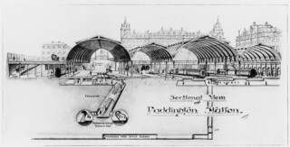 There isn’t much drama or grandeur evident from the outside of Paddington Station, the culmination of Brunel’s work for the Great Western Railway. It stands in a cutting, and the hotel at the head of the platforms conceals the long, glazed vaults of the train shed. Charing Cross and St Pancras are also fronted by hotels, but they don’t push the station entrances to left and right the way the one at Paddington does.