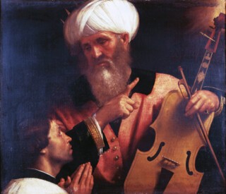 In the final room of the exhibition, devoted to portraits of the eminent and elderly made in the twilight of the 16th century, there are some fine heads by Tintoretto, stuck onto dummies and furnished with accessories (a chair, curtains, columns), to which he can have devoted very little time or effort – if he didn’t delegate the work to an assistant who was paid by the yard. Titian’s Allegory of Prudence, that strange painting of three heads from the National Gallery in London, is a more problematic case of a painting in which one part only, the central head, is worthy of the artist. The catalogue assigns the whole painting to Titian, however, and also defends Panofsky’s notion that the central head is that of Titian’s son Orazio: it may ‘plausibly be argued’, we read, that it is ‘compatible with’ the portrait of Orazio as he appears in the wax roundel in the exhibition – a good point if we knew that Orazio was in the habit of dying his beard.*