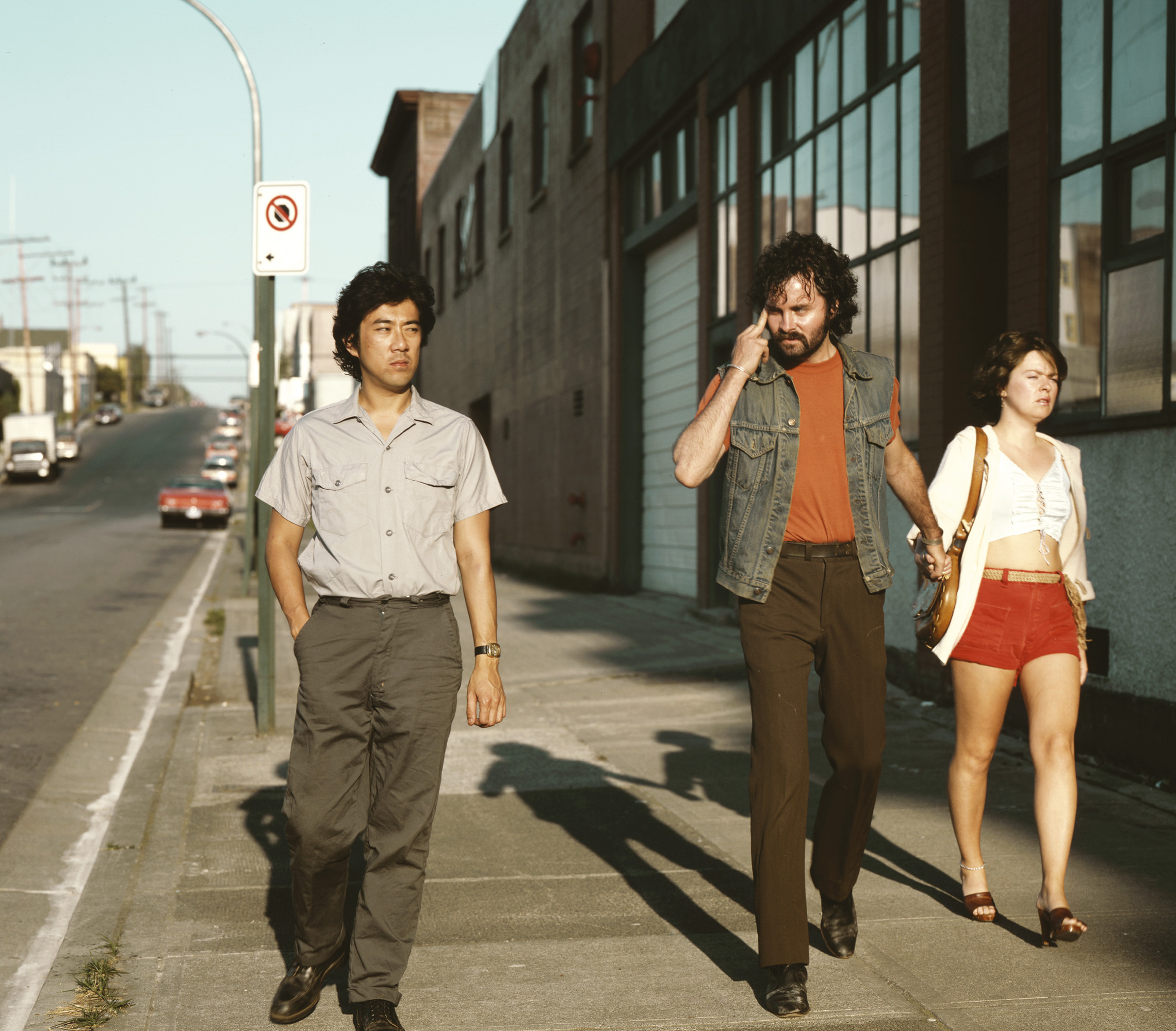 Jeff Wall’s Mimic appears to be a documentary photograph. A tough man walks down the street, girlfriend in tow, and exchanges threatening glances with a passer-by. In Vancouver in 1982, when the picture was taken, it may have been more blindingly obvious that (as Wall relates it) the man’s reflexive gesture constituted racial abuse. Mimicry: a white trash white man mimics an Asian man’s eyes, repeating a gesture that lingers in the culture. But the picture is more dynamic than any interpretation can suggest. The men’s eyes have just ceased to meet, everybody is in motion, the empty street behind sinks away, the street sign points off in a different direction. The striking thing about the picture is not the message you choose to think it carries, but the arrested drama of a momentary charged encounter in a blank urban landscape.