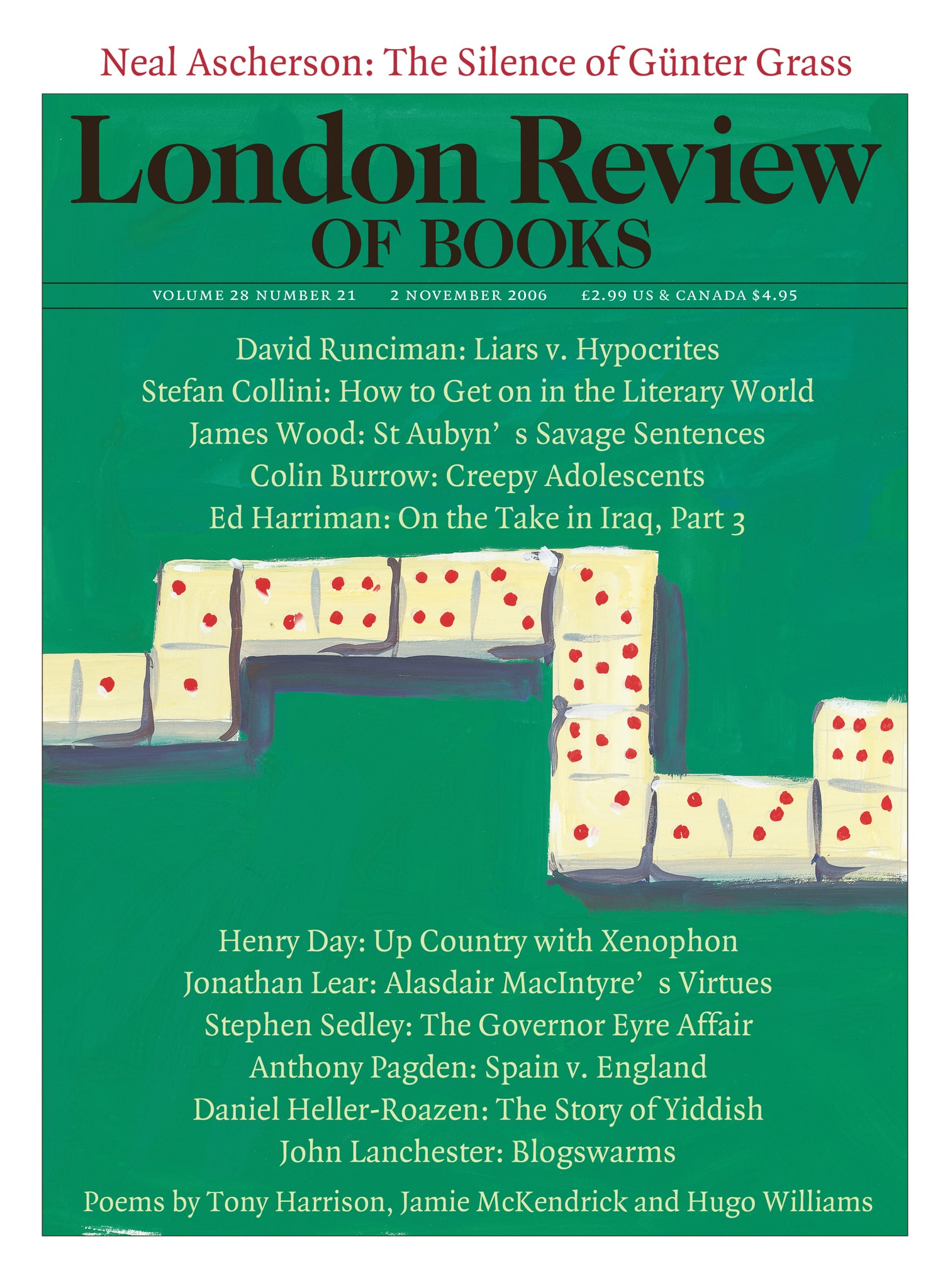 It is unsurprising both that public anger against Eyre and his officers was channelled into legal action and that legal action proved ineffective. But much that is revealing emerges in Kostal’s tracing of these events. The focus quickly swung away from the slaughter and brutality deployed against the Jamaican population: many of the Jamaica Committee’s supporters and spokesmen, regarding Gordon as an honorary white man, were at pains to emphasise the alternately idle and murderous disposition of Jamaicans particularly and blacks generally, and to proclaim themselves, as Huxley did, unmoved by ‘any particular love for, or admiration of, the negro’. From this stance of benchmark racism the campaign rapidly became domestic in its focus. Its evangelicals, who were the most likely to have humanitarian concerns about the Jamaican poor, became marginalised. Its radicals and moralists were interested in whether the same thing would be allowed to happen with impunity here or, more probably, in Ireland. Its lawyers were interested in the universality of common law principles and the risk that the exigencies of empire were producing two classes of British subject who could expect different standards of law and justice.