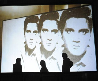 In the press release for Phantom Ride, Starling quotes Foucault’s claim that the modern museum or archive is a space that aspires to corral all times within its walls. There is certainly a sense that the film compacts moments from the Duveen Galleries’ seven decades into its seven minutes, and a recognition that a museum is also a ghost of itself, a repository for institutional memories of all its past exhibitions and displays. But the more apt reference, which Starling surely has in mind, is Paul Virilio’s work on modern warfare and the machinery of seeing. Because what Starling discovers isn’t a simple thematic concern with war and its depredations, but a fascination with the moving eye and with sightlines – and it’s that fascination that links the layout of a gallery with Mickey the machine-gunner, who trains his barrel straight at the camera, or Warhol’s Triple Elvis, who points his pistol at us three times. Phantom Ride is like a drone’s eye view of the gallery’s history. And in case we miss the point, Starling shows us a tiny balsawood model plane – part of Chris Burden’s 1999 project for the Duveen, When Robots Rule – slowly circling and then landing in a pool of light.