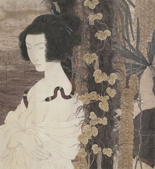 The other advantage of theming is that works which have no obvious affinity are surprised in unlikely encounters, only occasionally embarrassing. The third section of the show, ‘The World Within’, is typical. On the one hand, there are quietist pieces by Zhang Jian and Jin Weihong, both Nanjing fine arts graduates, both in their forties, both committed to the traditions of ink on paper and ink (and colour) on silk, Zhang with his stylised courtesans, Jin with her reticent female figures stranded on pale washes. On the other, there are brash, expressionist oils by Zeng Fanzhi (b.1964), including work from his Mask Series done in the 1990s: these ambitious studies of alienation as such, rather than the alienated subject, are top of the range pieces: Mask No. 6 sold for $9.7 million at Christie’s Hong Kong five years ago. Oddly, Yue Minjun’s inane grinning men are also assigned to ‘The World Within’. They are masks in their way, only more disturbing than Zeng’s. Behind the rictus grin of self-satisfaction there seems to be no living occupant and so, by extension, no prospect of an apprehended world: the ground in Yue (b. 1962) can be as vacuous and stylised as the figures. Satire of a deadly order is a better description than ‘cynical realism’. One of his earlier pieces, a brilliant, farcical-grotesque restaging of Manet’s Execution of Maximilian, sold for £2.9 million in London before the crash.
