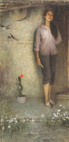 First to the revisionists, survivors of the Cultural Revolution known as Scar artists, who used socialist realism to assess the extent of the damage. In a study of a young woman standing under the eaves of a house – swallows on the wing, wild flowers at her feet, a straw hat hung from the wall – Wang Hai (b. 1955) makes a cool, ambivalent appraisal of student rustication: in this otherwise innocent, even sentimental canvas, we begin to discern a young exile from the city, one of millions banished to rural areas. Students are also the subject of a breathtaking narrative oil painting by Cheng Conglin (b. 1954) which dramatises the return to an exam curriculum in 1977, the year after Mao’s death. Wang’s Spring was painted in 1979; Cheng’s Summer Night: The Days of Restoring the College Entrance Examination was finished in 2009 and gives Scar art a respectable claim to longevity. (Scar literature, so-called after a story by Lu Xinhua in 1978, was short-lived, but recycled post-mortem in works like Wild Swans, aimed over the heads of mainland readers at the international market.)
